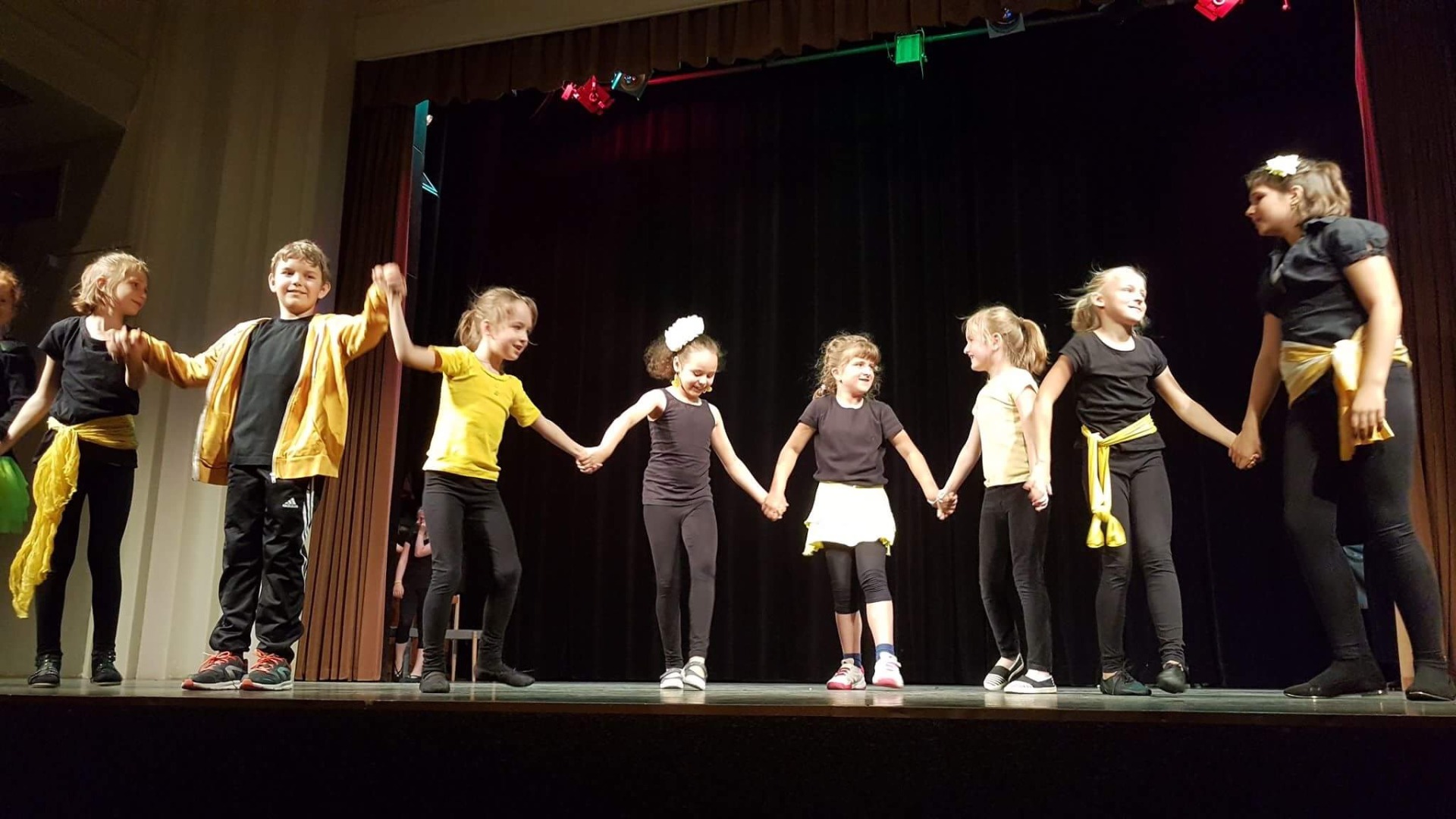 Děti připravují a poznávají svá těla, zjišťují své možnosti, posouvají své hranice. Součástí výuky je fyzická příprava a pohybová průprava, která dětem umožní provedení složitějších tanečních prvků.
